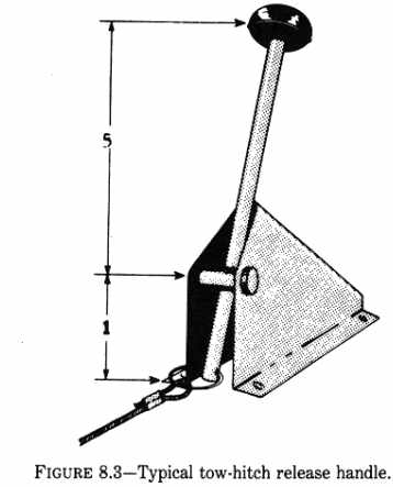 131. WEIGHT AND BALANCE. In most cases, the weight of the tow-hitch assembly will affect the fully loaded aft c.g. location. To assure that the possibility of an adverse effect caused by the installation has not been ignored, enter all pertinent computations in the aircraft weight & balance records. (In accordance with the provisions contained in FAR 43.5(a)(4).) 132. TOW RELEASE MECHANISM. a. Release lever. A placard indicating the direction of operation should be installed