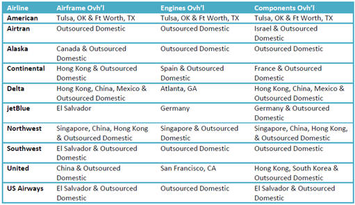 For example, in 1999 American, United, Northwest, US Airways, Delta, TWA, and Continental all performed the overwhelming majority of their aircraft maintenance work in-house. |