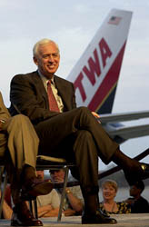 Celebrating the anniversary in St. Louis with both American and TransWorld Airlines (TWA) employees, American's senior vice president of human resources, Sue Oliver, also is on hand. American's recent acquisition of TWA provides the airline with an important hub in St. Louis - improving its position as an east/west carrier - and adds nearly 20,000 employees, 183 airplanes and 162 airport gates around the world.