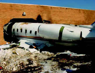 The captain stated that after all of the passengers had arrived he loaded the airplane. According to post accident statements and physical evidence, the passengers carried only light baggage, such as coats and briefcases or laptop cases, which was stowed in various locations throughout the cabin. The only bags stowed in the aft baggage compartment were suitcases belonging to the pilots and cabin aide. The captain stated that the passengers told him that their company operated its own Challenger (a CL-601) and that they were “very familiar” with the airplane. He stated that, after briefing the passengers regarding expected turbulence during the flight to Chicago, he went to the cockpit and began the “starting engines checklist,” believing the cabin aide would finish the safety briefing. According to the cockpit voice recorder (CVR)9 and air traffic control (ATC) transcripts, about 0711, the first officer contacted TEB ground control and indicated that they were ready to depart. The ground controller issued instructions to taxi to runway. As they taxied, the pilots discussed their departure and applicable noise abatement procedures and programmed the airplane’s flight director. About 0715:43, the captain suggested that they perform the before takeoff checklist, and the first officer responded with taxi checklist items, including the trim setting and flight control checks. CVR information indicated that the pilots checked the movement of the flight controls (the elevator, rudder, and ailerons) from about 0716:09 to 0716:21. The pilots stated that the movement of the flight controls was satisfactory and unrestricted during this check. They further reported that there were no abnormal lights or indications during the performance of the checklists, the taxi, or the attempted takeoff. About 0716:22, while they were still taxiing to runway 6, ATC instructed the pilots to taxi into position on the runway and hold, pending an IFR release. The first officer acknowledged. About 0716:36, the first officer announced that the taxi checklist was completed and began the before takeoff checklist. When the first officer read the “windshield…heater” before takeoff checklist item, the captain responded “they…briefed the standard for us.” The first officer read no more checklist items aloud, but, about 0716:54, he announced that the before takeoff checklist was complete.10 About 15 seconds later, as the airplane was taxiing onto runway 6, ATC cleared the flight for takeoff, advising them to “keep it on the roll…traffic is a Learjet on 4 mile final.” The controller repeated the takeoff clearance about 0717:19, and the pilots acknowledged the clearance. About 0717:32, the captain stated, “let’s go,” and, about 1 second later, the CVR recorded sounds similar to an increase in engine power. The captain was the flying pilot for the accident flight, and he stated that he steered the airplane onto the runway with his left hand and increased engine power for the takeoff with his right hand. The captain stated that, as the airplane accelerated on the runway, he kept his left hand on the tiller and his right hand on the power levers while the first officer held the control yoke. The first officer monitored the airplane’s acceleration and announced 80 knots and V1, and VR.11 According to the captain, as the airplane accelerated, he transferred first his left and then his right hand to the control yoke to prepare for liftoff. He stated that the airplane’s acceleration to this point had seemed normal and that he did not notice anything out of the ordinary when he first grasped the control yoke. However, airport surveillance videotapes and post accident witness statements indicated that the airplane’s nose never lifted off the runway, even at an apparently higher-than-normal liftoff speed. CVR evidence indicated that, about 5 seconds after the airplane accelerated through the rotation speed, the captain commanded a rejected takeoff (RTO), and the CVR recorded sounds similar to decreasing engine power. The captain told investigators that he applied brakes, speed brakes, and thrust reversers in an attempt to stop the airplane and that all of those systems appeared to be working. The airplane was decelerating as it ran off the end of the runway and hit a building. After the airplane hit the building, a postimpact fire ensued. Figure 1 shows the airplane partially embedded in the building after the postimpact fire was extinguished. |