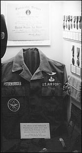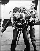 On April 11th, 1966, while defending some of his wounded comrades. For his bravery and sacrifice, he was posthumously awarded the nation's second highest military decoration, the Air Force Cross. "Pits", as he was known to his friends, was nearing his 300th combat mission on that fateful day when some men of the U.S. Army's 1st Division were ambushed and pinned down in an area about 45 miles east of Saigon. Two HH-43 "Huskie" helicopters of the USAF's 38th Aerospace Rescue and Recovery Squadron were rushed to the scene to lift out the wounded. Pits was a pararescuemen (PJ) on one of them. Upon reaching the site of the ambush, Pits was lowered through the trees to the ground where he attended to the wounded before having them lifted to the helicopter by cable. After six wounded men had been flown to an aid station, the two USAF helicopters returned for their second loads. As When its engine began to lose power, the pilot realized he had to get the Huskie away from the area as soon as possible. Instead of climbing into the litter basket so he could leave with the helicopter, Pits elected to remain with the Army troops under enemy attack and he gave a "wave-off" to the helicopter which flew away to safety. one of them lowered its litter basket to Pitsenbarger, who had remained on the ground with the 20 infantrymen still alive, it was hit by a burst of enemy small-arms fire. Pits continued to treat the wounded and, when the others began running low on ammunition, he gathered ammo clips from the dead and distributed them to those still alive. Then, he joined the others with a rifle to hold off the Viet Cong. About 7:30 PM that evening, Bill Pitsenbarger was killed by Viet Cong snipers. When his body was recovered the next day, one hand still held a rifle and the other a medical kit. A1C William H. Pitsenbarger, a PJ who participated in more than 300 rescue missions, is shown putting on a parachute, scuba tanks and other equipment for a jump into water. In Vietnam, PJs --all volunteers-- earned more decorations per capita than any other group of USAF personnel. |