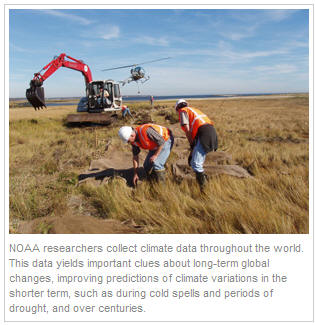 More and more, Americans are witnessing the impacts of climate change in their own backyards, including sea-level rise, longer growing seasons, changes in river flows, increases in heavy downpours, earlier snowmelt and extended ice-free seasons in our waters. People are searching for relevant and timely information about these changes to inform decision-making about virtually all aspects of their lives. “By providing critical planning information that our businesses and our communities need, NOAA Climate Service will help tackle head-on the challenges of mitigating and adapting to climate change,” said Secretary Locke. “In the process, we'll discover new technologies, build new businesses and create new jobs.” |