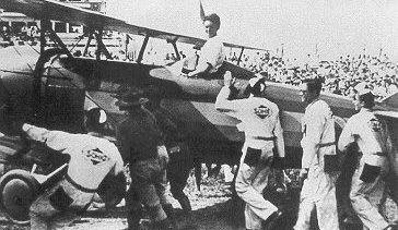 | Louise Thaden being congratulated for her first place finish in the 1929 Women's Air Derby. | ||||