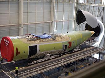 The wings and nose arrived some days earlier and the integration of the central box and outer wings has already begun. The horizontal tailplane (HTP) is expected next week and the vertical tailplane (VTP) in two weeks time. France will receive its first A400M military airlifter around the turn of the year 2012/2013. The Airbus A400M, also known as the Atlas, is a multi-national four-engine turboprop military transport aircraft. It was designed by Airbus Military as a tactical airlifter with strategic capabilities. |