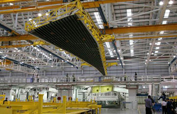 November 22, 2011 - Assembly of the 32 meter long carbon fiber wings for the first A350 XWB (MSN1) has started at Airbus’ recently opened “North Factory” in Broughton, UK.