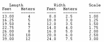 are 13 feet (4 m) long by 8 feet (2.5 m) wide. The width of a black border,