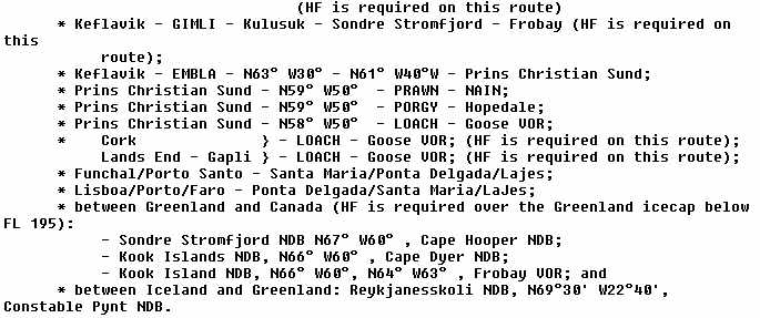 passing through 65 N 30 W and Kulusuk, are exempted from the HF requirements.