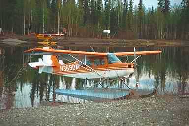 Aircraft mounted on floats or skis should be secured in the usual manner to tiedown anchors or "deadmen" sunk under the water or ice. When warning of an impending storm is received, pilots have been known to partially flood the floats of their aircraft, thereby partially sinking the aircraft. In addition, the aircraft is tied down securely to anchors. Seaplanes moored on land have been saved from high-wind damage by filling the floats with water in addition to tying down the wings. Pilots of ski-equipped aircraft sometimes pack soft snow around the skis, pour water on the snow, and permit the skis to freeze to the ice. Although the techniques mentioned in this paragraph are not recommended practices, they are cited here because they have proven effective in preventing damage from sudden windstorms. Extreme care must be taken to reverse the effects of any such measures prior to operation of the aircraft. |